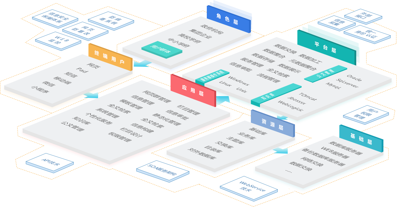 元數(shù)據(jù)管理、多維分類管理、復雜流程審批、網(wǎng)上辦事、場景服務、資源目錄服務、網(wǎng)站SAAS服務
