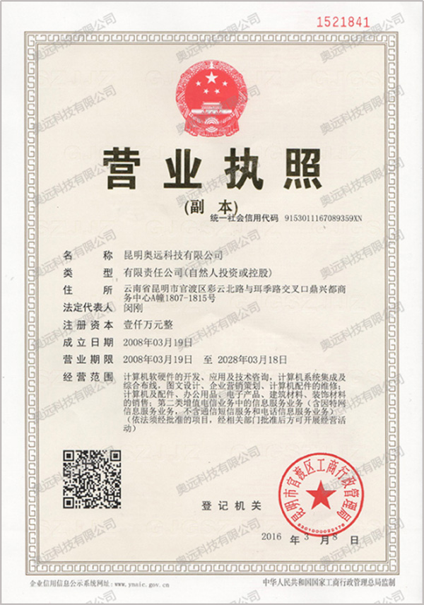 昆明奧遠(yuǎn)科技有限公司成立于2008年,注冊資金1000萬元,是一家專業(yè)從事系統(tǒng)開發(fā)、網(wǎng)站建設(shè)、移動(dòng)端應(yīng)用(wap、微信、APP)、新媒體推廣運(yùn)營等互聯(lián)網(wǎng)業(yè)務(wù)的高新科技企業(yè),是國內(nèi)率先的“互聯(lián)網(wǎng)+”解決方案提供商。公司秉承著“為客戶創(chuàng)造價(jià)值!”的經(jīng)營理念,已為眾多品牌企業(yè)搭建好有效的互聯(lián)網(wǎng)平臺,推動(dòng)企業(yè)輕松跨入“互聯(lián)網(wǎng)+”時(shí)代,是中國西南地區(qū)頗具影響力的信息化建設(shè)公司之一。
