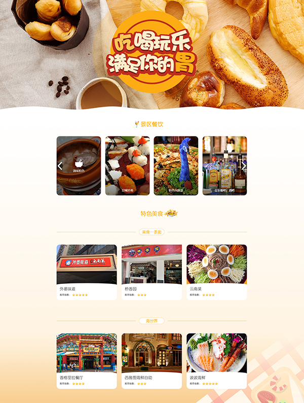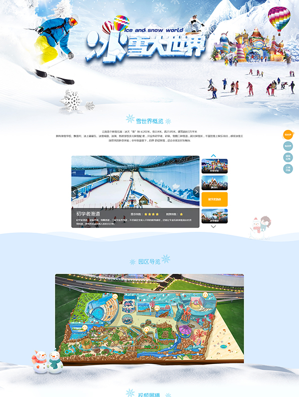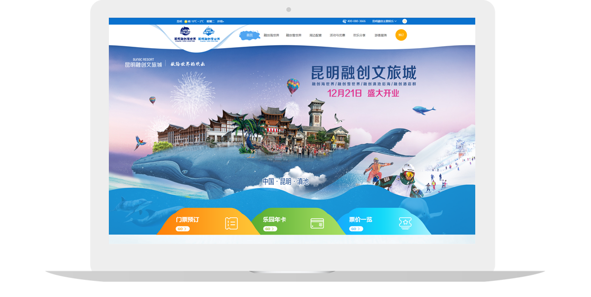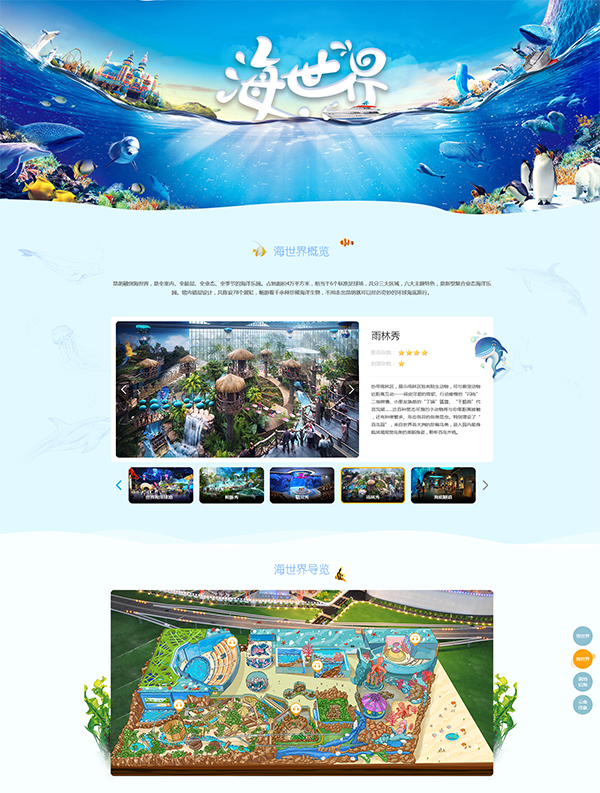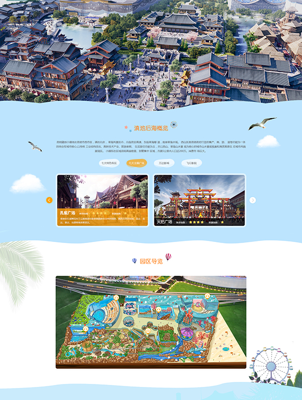首頁根據樂園題材個性設計,結合H5動畫讓每一個版塊都更加靈動,吸引用戶的瀏覽欲望,更加直觀的突出樂園主要想表達的內容。結合融創文旅自身獨特主題,每一個主題設計獨立個性的專題展示,包括了主題介紹、項目展示、地圖導覽、視頻、美食等豐富內容為一體,讓用戶更直觀的了解樂園主題。