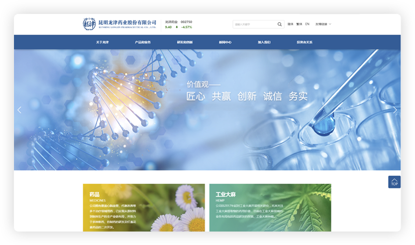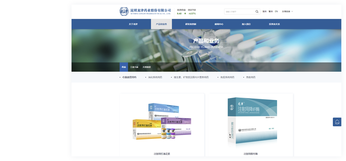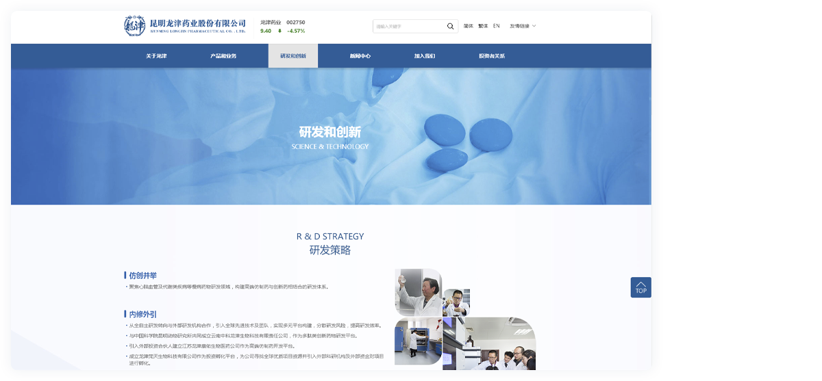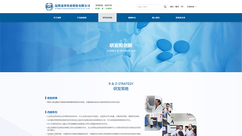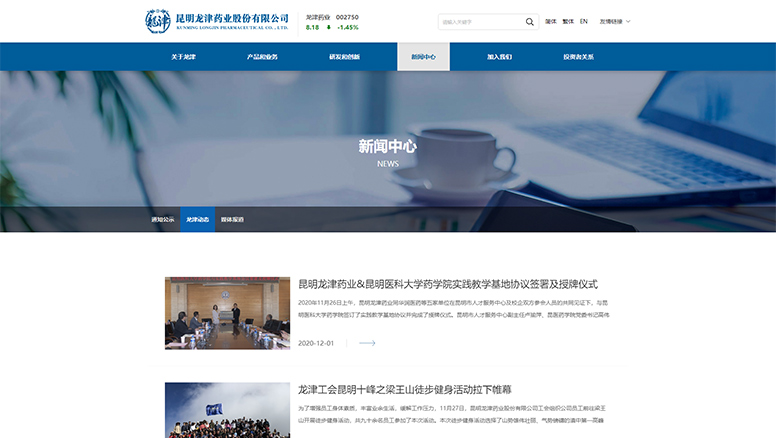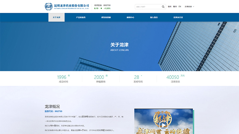 昆明龍津藥業股份有限公司成立于1996年9月16日。“龍津潤世,康澤蒼生”——是龍津藥業創立的初心,龍津藥業以守護生命,改善人類健康狀況,共享舒適生活為使命。一直秉承著匠心、共贏、創新、誠信、務實的價值觀。龍津藥業聚焦于心腦血管疾病及代謝類疾病兩大領域的治療型藥物的開發、研究、生產及銷售。龍津藥業分別獲得國家十三五重大新藥創制臨床前研究2018年專項、國家發改委會同中醫藥管理局共同實施的中藥標準化2016年專項、科技部國家十二五重大新藥創制大品種技術改造2012專項及國家發改委產業振興2010年專項等多項國家級項目。
