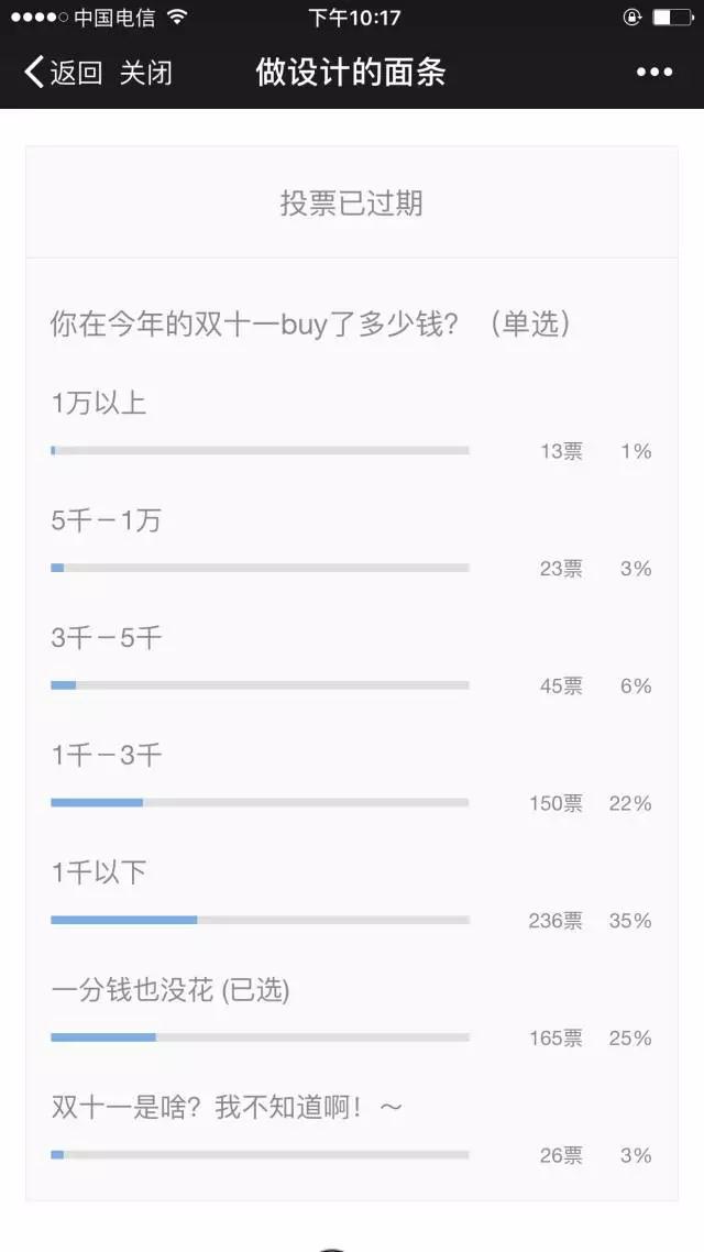 給大家看看一下上次大家在雙十一的花費抽樣小調查: